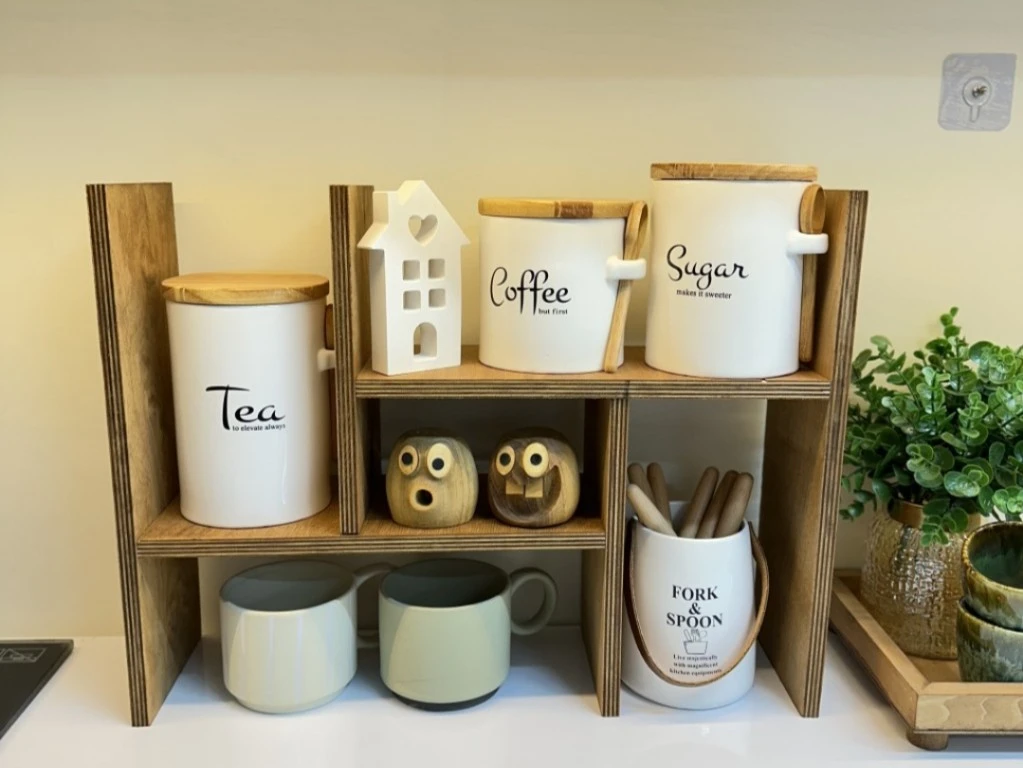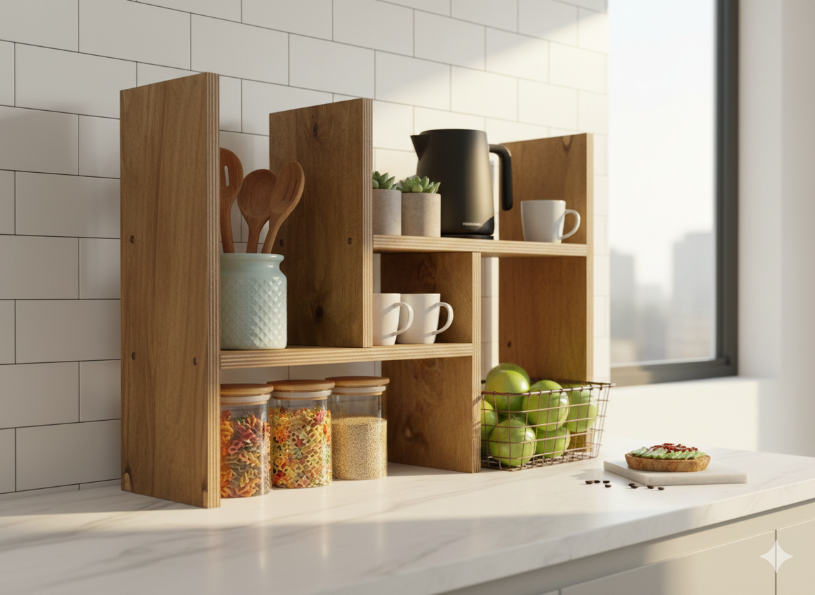 • متعدد الاستعمالات: تقدري تستعمليه لتنظيم ركن القهوة (Coffee Corner)، ترتيب التوابل، أو حتى في الحمام ولا المكتب.